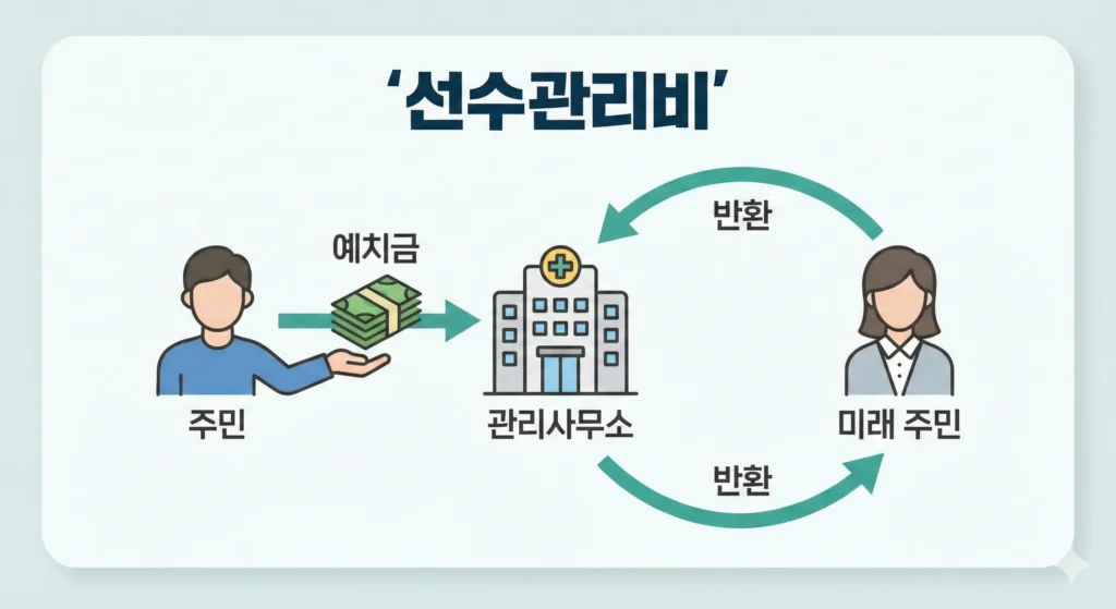 • 선수관리비의 정체: 아파트는 관리비가 ‘후불제’입니다. 입주 초기 관리사무소 운영 자금을 위해 입주민들에게 미리 한두 달 치의 비용을 걷습니다. 이 돈은 사라지는 것이 아니라 보증금처럼 맡겨두는 돈이며, 이사 나갈 때 전액 돌려받습니다.
