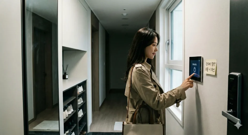 • Tip: 외출 시 보일러를 끄지 말고, 평소 온도보다 1~2도만 낮게 설정(또는 외출 모드)하고 나가세요. 식어버린 바닥을 다시 데우는 데 훨씬 많은 에너지가 듭니다.