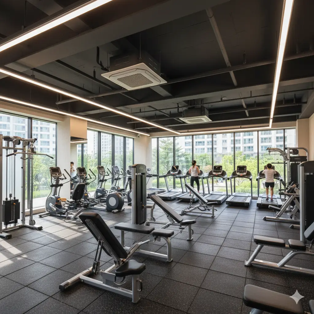 신축 아파트 커뮤니티의 기본이자 가장 활발하게 이용되는 시설입니다. 단순히 러닝머신 몇 대만 갖춘 곳이 아닌, 다양한 최신 운동 기구와 GX(Group Exercise)룸을 갖추어 입주민들이 별도의 외부 헬스장 등록 없이도 건강 관리를 할 수 있도록 설계되어야 합니다. 또한, 넓은 공간과 쾌적한 환기 시스템, 그리고 전문 트레이너 상주 여부도 중요한 평가 기준입니다.