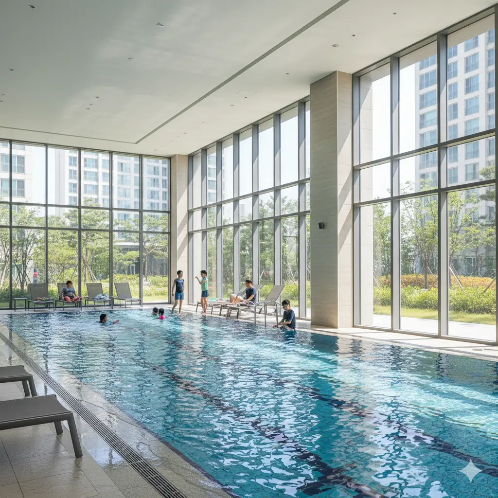 주변 단지와 확실한 차별점을 만들고 아파트의 품격을 높이는 대표적인 고급 시설입니다. 단지 내 수영장은 단순한 레저를 넘어, 아이들의 수영 교육 및 가족의 건강 증진 공간으로 활용됩니다. 함께 갖춰진 사우나 또는 건식/습식 스파 시설은 입주민의 피로 해소와 라이프스타일 만족도를 극대화합니다. 이처럼 희소성이 높은 시설은 청약 경쟁률과 향후 매매 가격에도 직접적인 영향을 미칩니다.
