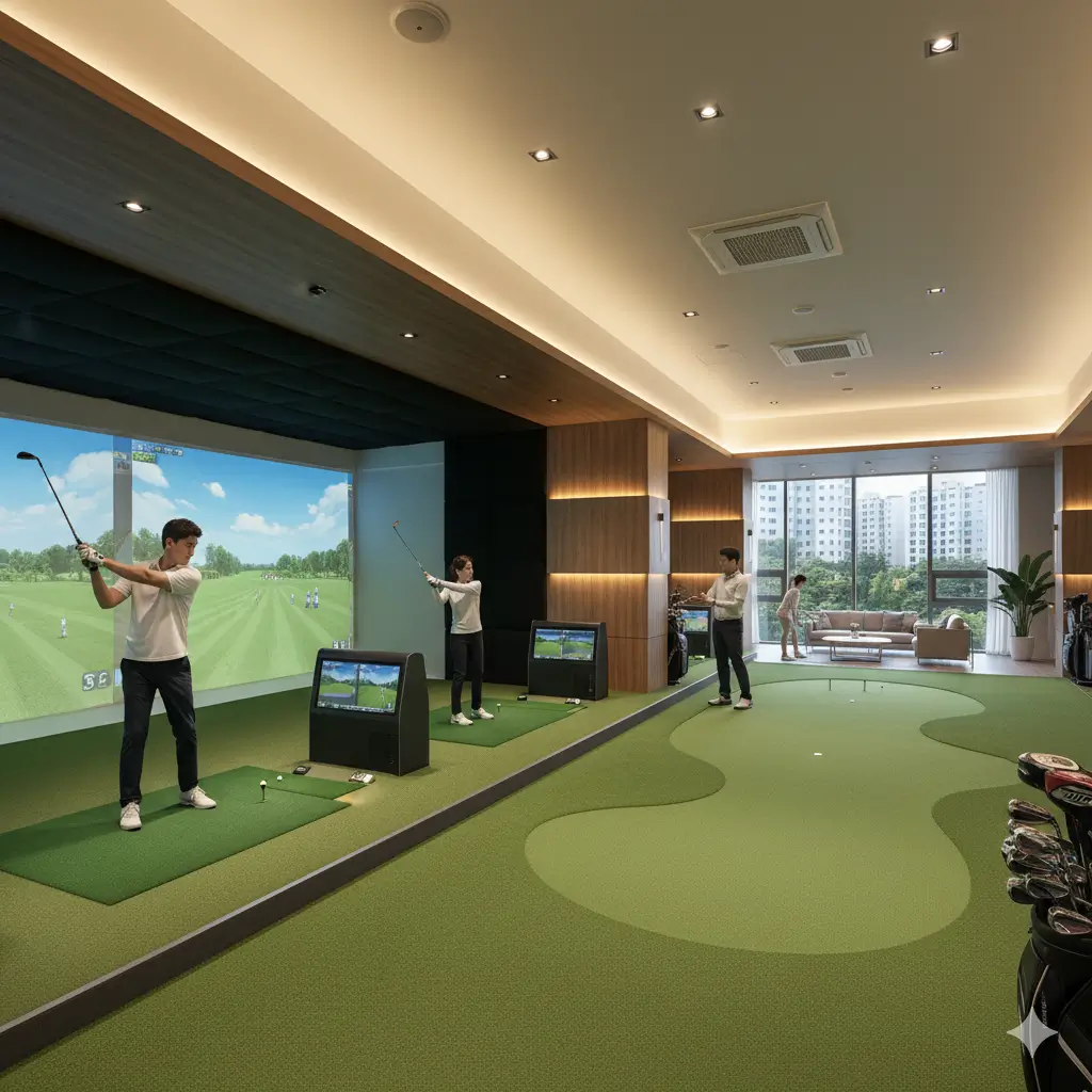 여가 및 접객 환경을 향상시키는 시설입니다. 실내 골프 연습장은 스크린 골프 시설과 퍼팅 연습장 등을 갖추어 날씨에 관계없이 이용 가능해야 하며, 티칭 프로 상주 여부가 중요합니다. 또한, 친척이나 지인 방문 시 숙박을 제공할 수 있는 고급 게스트 하우스는 입주민의 만족도를 높이고, 외부 방문객에게 아파트의 품격을 보여주는 역할을 합니다.