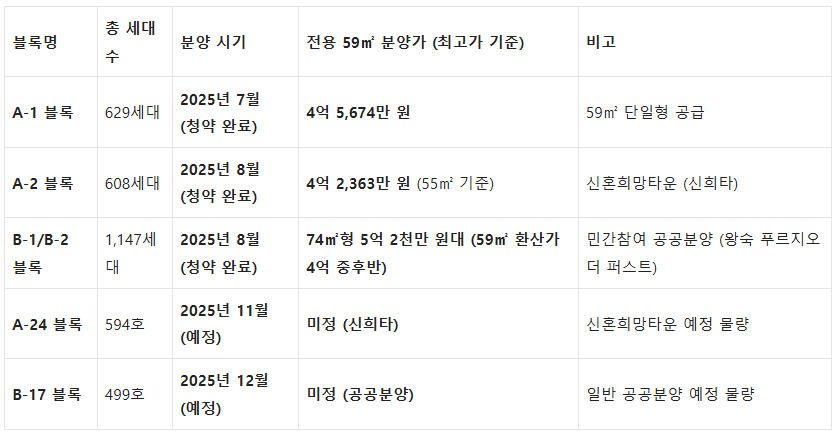 2. 분양가 분석: 블록별 본청약 가격의 현실과 향후 일정
